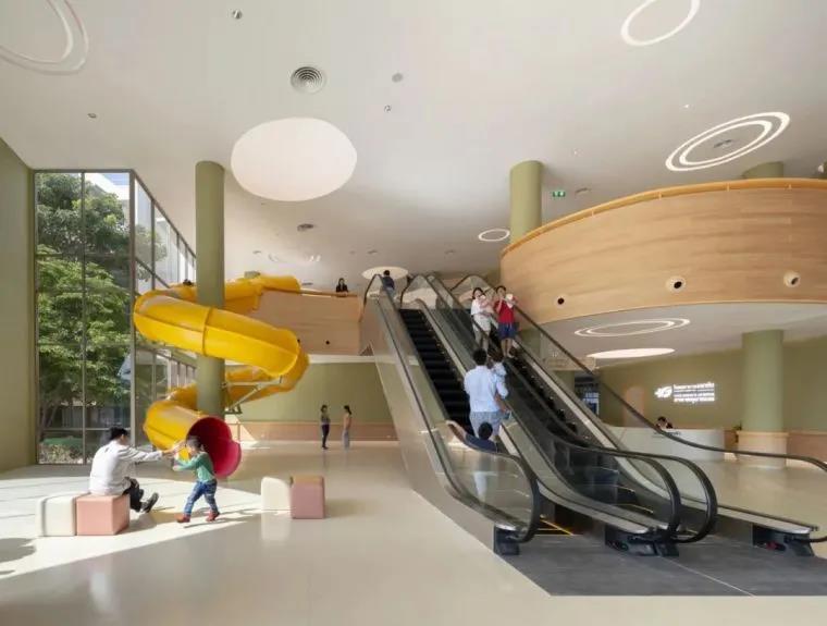 入口處設置巨大螺旋滑梯,讓孩子們一進來就可以放松下心情,分散了看病的恐懼。