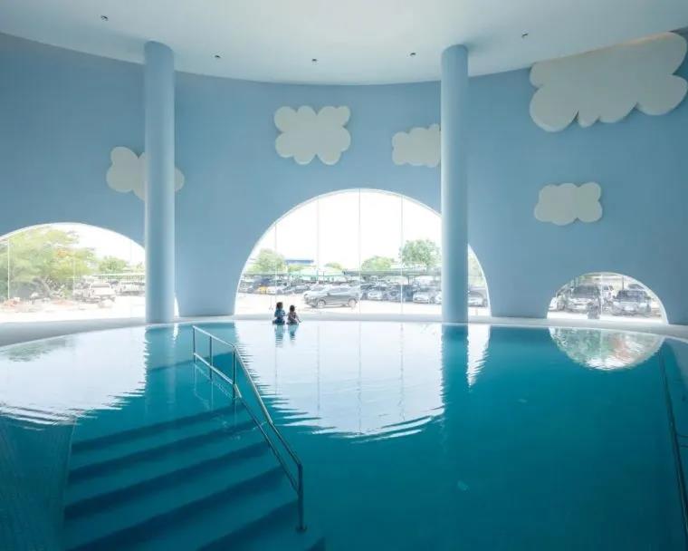這個項目還設計了一個室內游泳池,上面漂浮著一堆人造云。