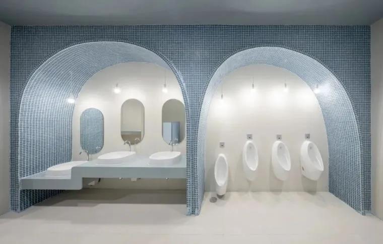 醫院的衛生間也被設計成不同的顏色,水槽和小便池設置在拱形的墻面中。設施是根據孩子們的身高設計,以方便不同年齡的孩子使用。從孩子的角度出發,將游樂場設計從各個方面納入規劃,兒童醫院就成為了有趣而又溫暖的地方。