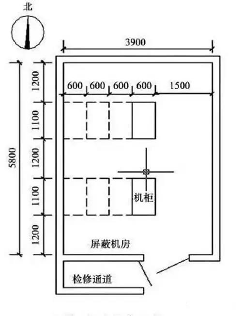 除此之外,還需要考慮預留施工防護空間,并盡量避免調整現有機房管路和屏蔽門體位置。以圖1為例,在同等條件下,應該優(yōu)先考慮將機房向東側和北側擴展。因為南側是機房屏蔽門體和檢修通道,向南擴展需要將其拆除后重新安裝,施工難度較大,特別是屏蔽門體本身是屏蔽機房最重要的防護部位,一旦重新安裝后屏蔽效果降低,會對機房整體屏蔽效能產生較大影響。如果向西側擴容,擬拆的墻體緊貼機柜,在實施過程中缺少施工作業(yè)面,不利于對現有設備的防護。因此,在制定擴容方案時需要綜合考慮各種因素,在滿足建設目標的前提下,盡可能減少投資,降低實施難度。
