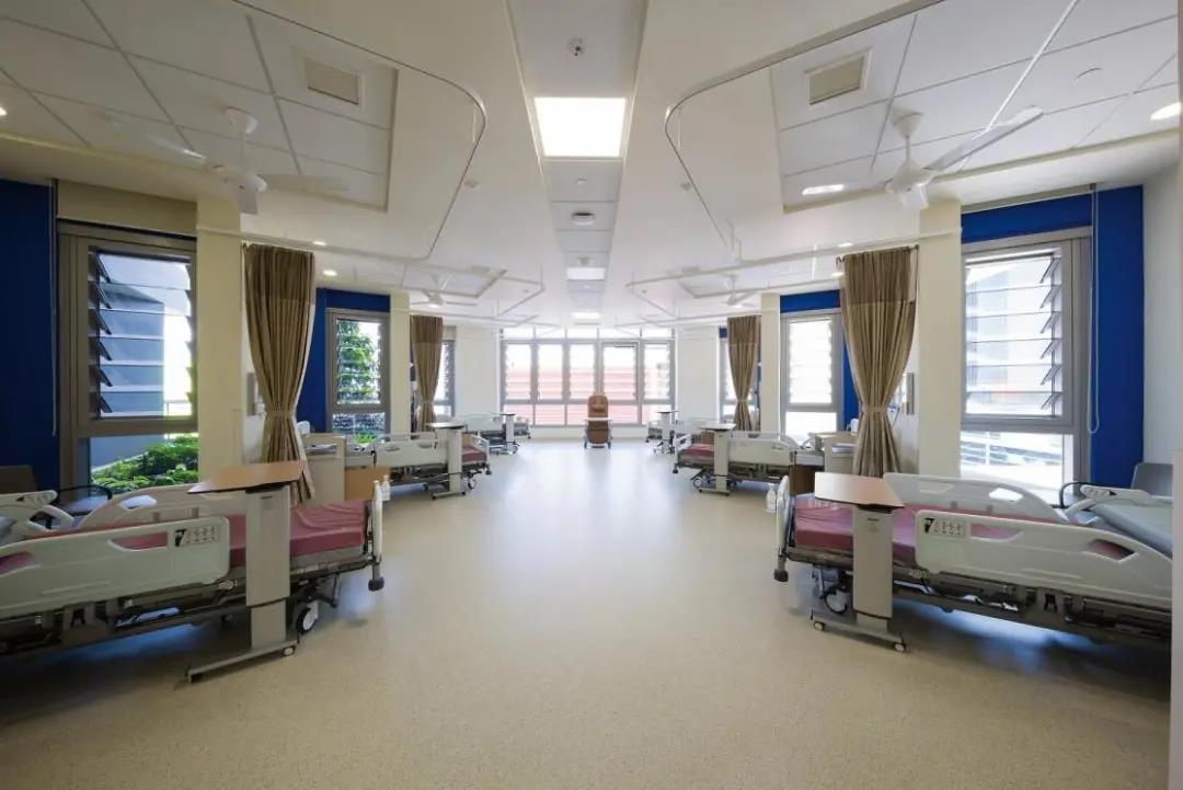 根據醫院建筑面積特點和業務需求,不建議設置超過3床的開間病房,這會影響院感和患者舒適度。同時,根據規范規定的病房床間距不小于0.8米(筆者建議不小于1米)和通道不小于1.1米(筆者建議不小于1.2米)的要求,建議病房面積不小于35平方米,其中衛生間設置不低于5平方米。以長方形房間建設為宜,開間長不低于8米,寬不低于4米,衛生間可設計為正方形或長方形,原則上單邊不小于2米,且包含管井。每房一窗,朝向建議以西南方向為主,避免正西和正北。若條件允許,可參考新加坡黃廷芳醫院一人一窗的模式,讓每一名患者都能享受到陽光。